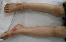 下肢,臀部等分批出现瘀斑,紫癜,严重者可能发生水泡,血泡,甚至溃疡。
